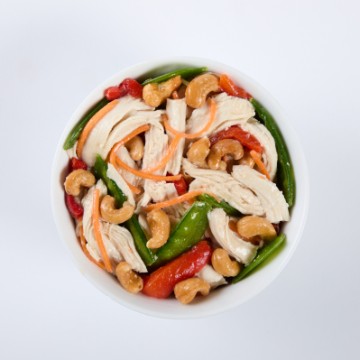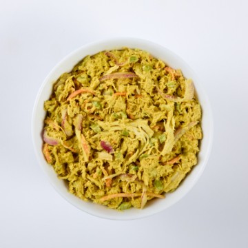 <p>Shredded Chicken Breast, Red Onion, Carrots, Tzatziki, and Cucumber</p>